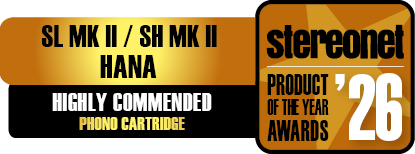 The improved, non-resonant body shape, modeled after the Hana M Series, is damped with a matte Soft Feel Black elastomeric resin paint and features a brass cap with threaded cartridge mounting fittings. The heavier MK II cartridges offer better coupling and expanded compatibility with a wider range of tonearms, improving bass and dynamics.