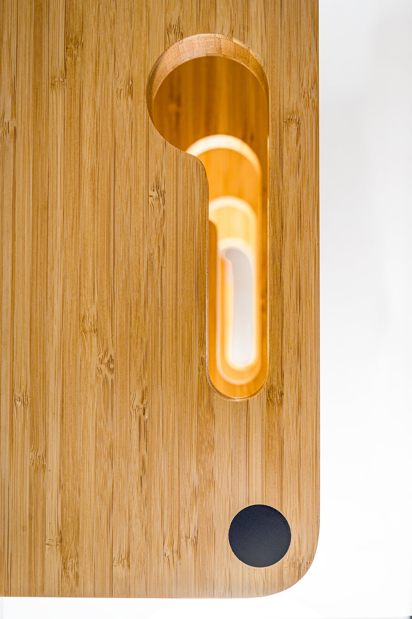 PlenQ’s hi-fi furniture is based around 25-millimetre thick, solid bamboo plywood. Bamboo ply is made out of solid bamboo strips. These solid strips are first cooked to stabilize the natural colour. Next step is gluing the strips to generate sheet material which is exposed to high pressure. Out of this sheet material, shelves are cut to size using a high precision CNC machine. The shelves are then finished with a scratch-resistant polyurethane coating. This coating makes the shelves water-tight, seamless, wear-resistant and dirt-repellent.
