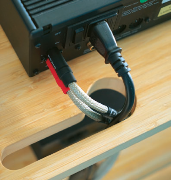 In addition to the durability of the components, the use of a sandwich construction of the shelves, which are then put under mutual tension, has a unique property in terms of the degree of dissipation of resonances. Furthermore, the combination of bamboo, carbon with fiberglass core, aluminium and polyurethane lacquer forms the perfect basis for all your hi-fi equipment. Placed on a PlenQ each component will be able to do its job optimally.