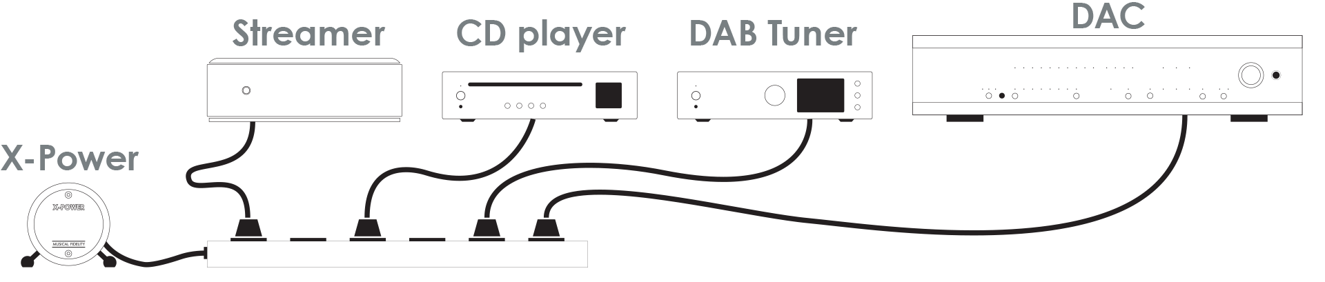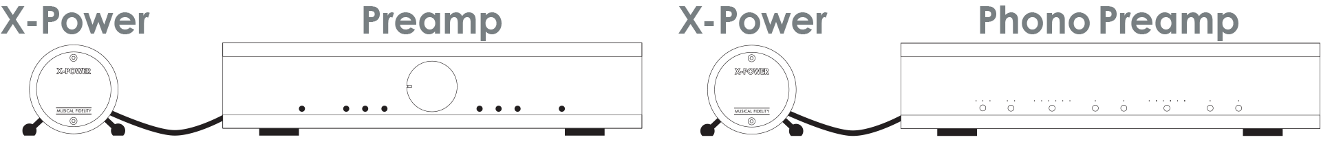 The X-Power can be used to supply clean power to sources like CD players, phono preamps, regular preamps, DACs, streamers and many more.