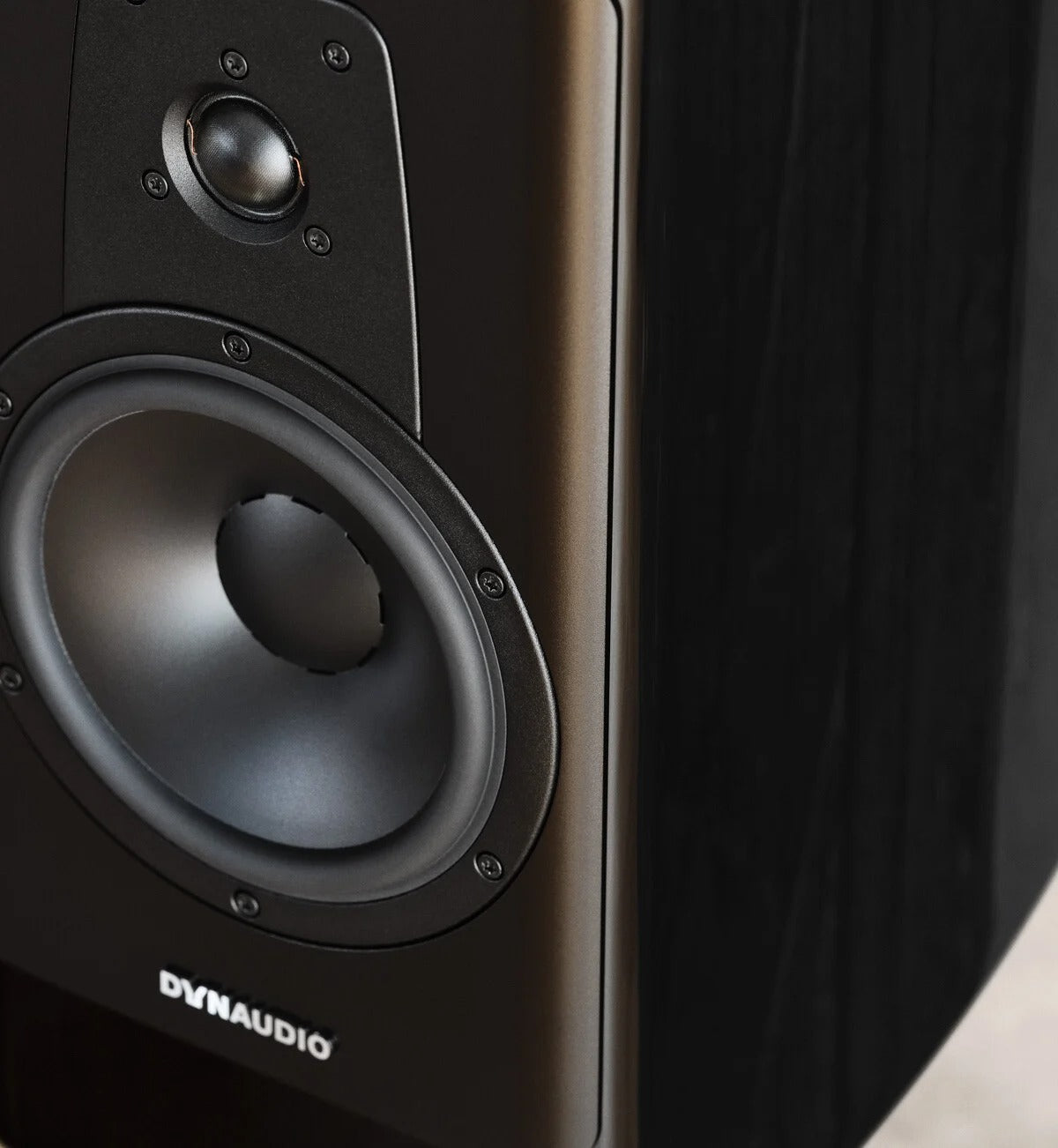 The soft-dome diaphragm is finished with our DSR coating. It’s a high-precision method, formulated and mixed by hand and applied by robots, that puts the coating at the exactly right density in exactly the right places, so you hear exactly what you’re supposed to hear. Which is exactly what the artist wants. (And while we aren’t allowed to tell you exactly what the DSR coating is, we can tell you what the acronym stands for: Dynaudio Secret Recipe. So now you know.)