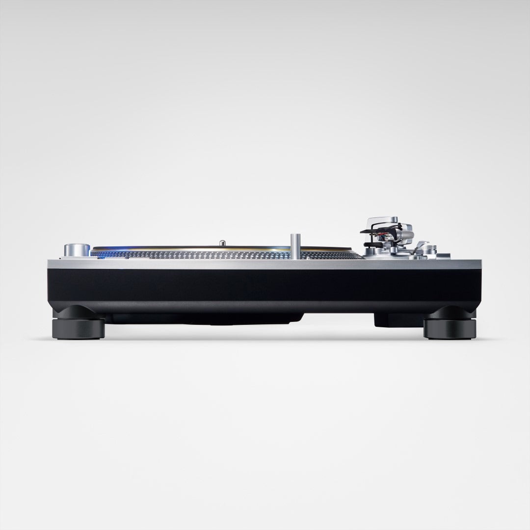The SL-1200G triple-layer turntable combines a brass and aluminum die-cast platter, a highly sensitive tonearm, and high-precision motor control technology.