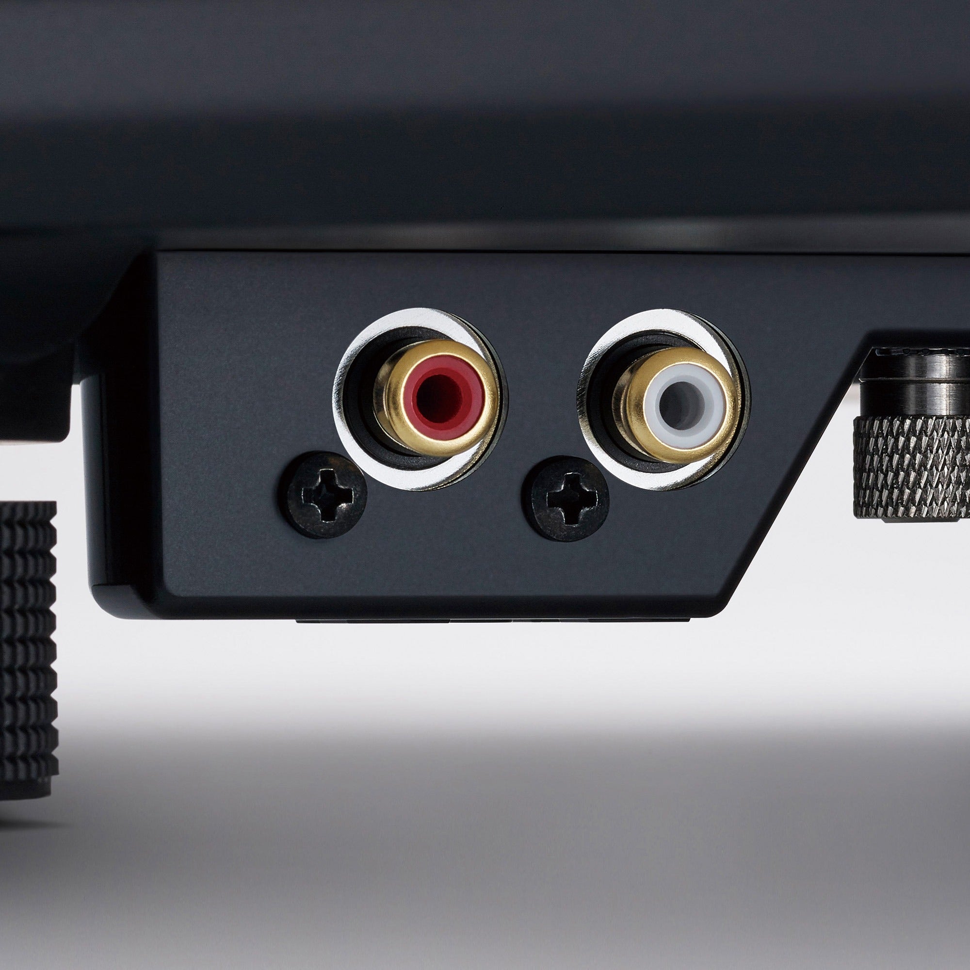 The turntable uses gold-plated phono terminals for detachable cables, while metal shielding construction inside the case reduces the effects of external noise.